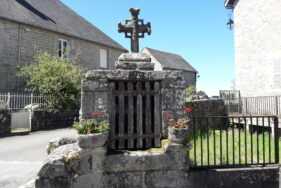 InformationsCroix de la fin du 15e siècle, portant une sculpture rudimentaire représentant une crucifixion. La décoration des abouts est obtenue, pour chaque bras, par quatre crochets placés sur les diagonales.