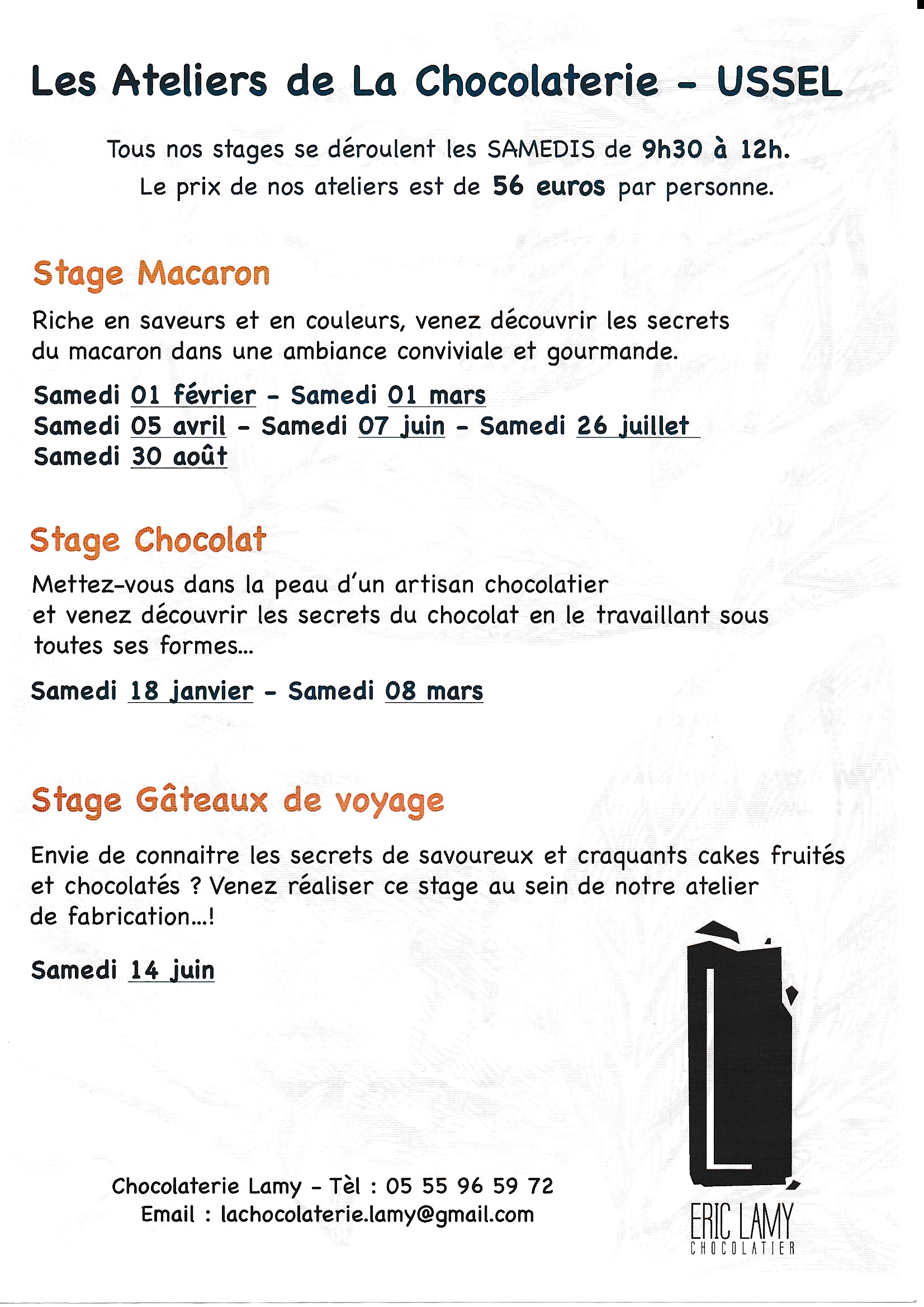 La Chocolaterie Lamy vous propose des stages gourmands; stage macaron, riche en saveurs et en couleurs, venez découvrir les secrets du macaron dans une ambiance conviviale et gourmande. Sur inscription