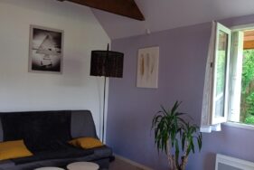 Gîte avec entrée indépendante, aménagé dans un ancien corps de ferme rénové en 5 gîtes, en bordure d’un plan d’eau avec terrain commun aménagé non clos (environ 7000 m2). Gîte pouvant communiquer sur réservation avec le gîte mitoyen n°3 et situé au-dessus du gîte n°5. Cet appartement se compose d’une chambre (1 lit 140) et d’une mezzanine avec 3 lits 90 (escalier déconseillé aux personnes ayant des difficultés de mobilité et aux enfants en bas âge), un séjour avec coin cuisine équipée, lave-vaisselle, lave-linge, salon canapé clic clac. WIFI-Télévision 4K . Salle d’eau et WC séparés. Équipement bébé gratuit sur réservation. Un Kit de ménage avec des produits éco-responsables vous sera fourni.